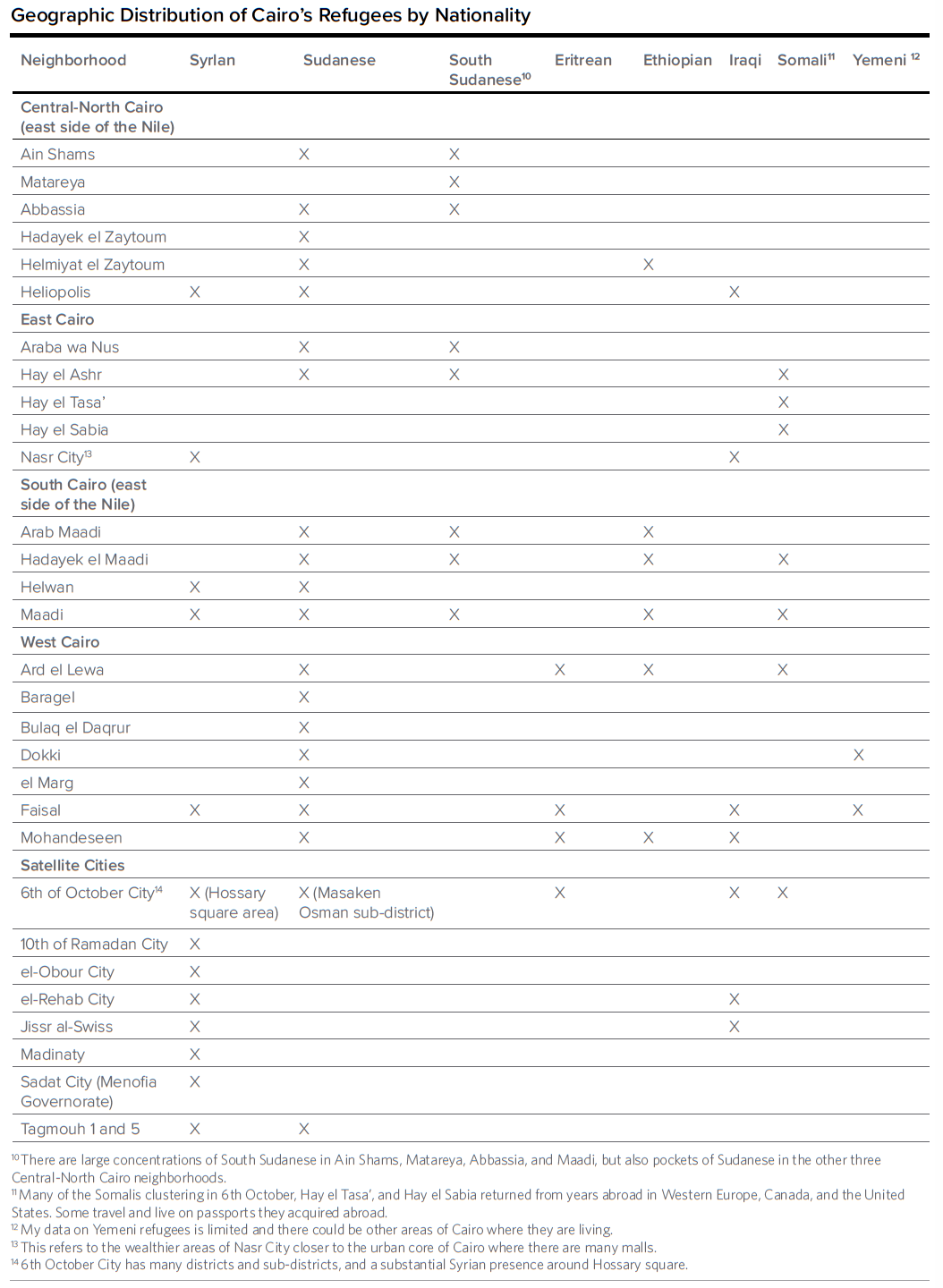 Cairo’s refugee population is clustered by nationality in disparate, but sometimes overlapping, parts of the city.